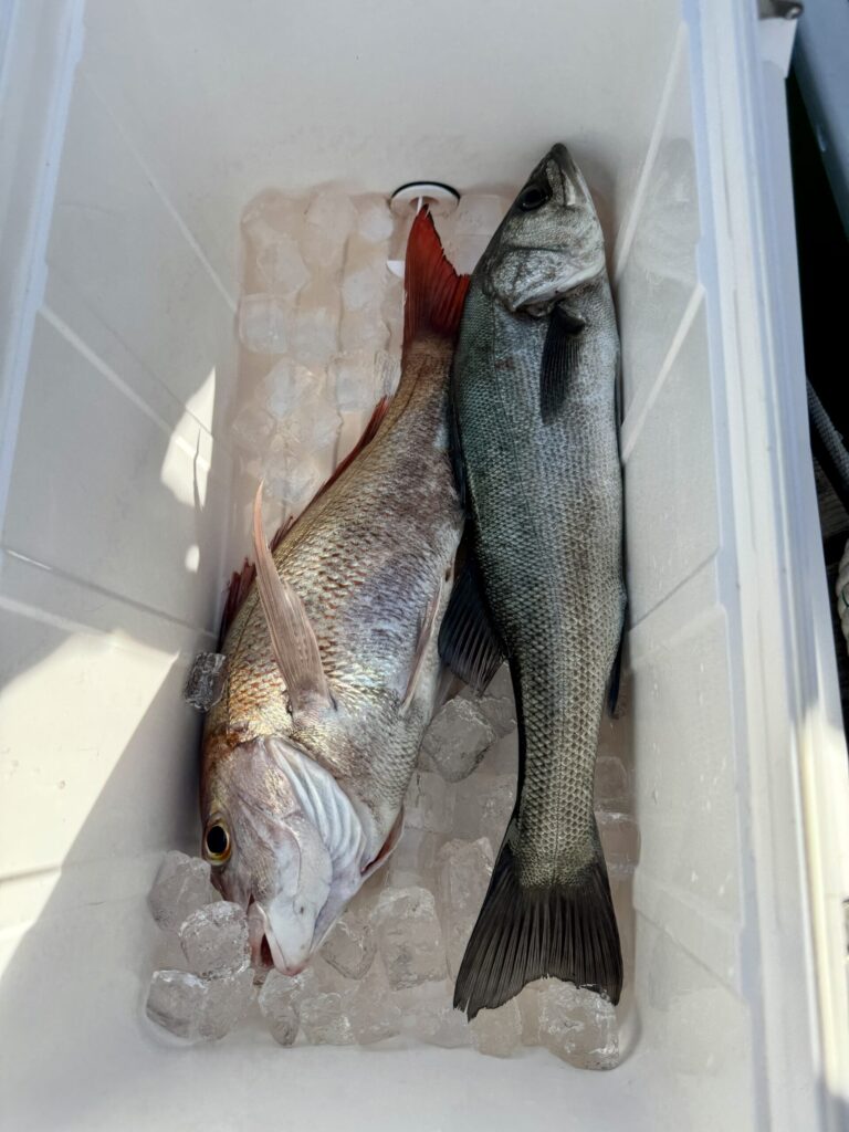 21日は朝から大船団・・・全く口を使わずタイの顔が見れる程度でした。 22日は、船は減りましたが未だ口を使わない状況。タイサビキ初めての方が4枚釣りました。 23日は見切って西へ!が、こちらも反応あるのに口を使わず撃沈。 3日間タイの顔が見れるのが精一杯でした。 ご乗船頂いた皆様には苦しい思いさせて申し訳ございません。 船長の力不足であります。 またリベンジお待ちしております。 ご乗船ありがとうございました。